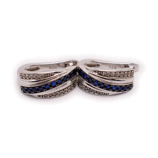 Серьги. Серебро 925 пробы. Длина 1,8 см. ⌀ 1,8 см. Вес 4,9 г. Застежка: Английский замок. Со вставками