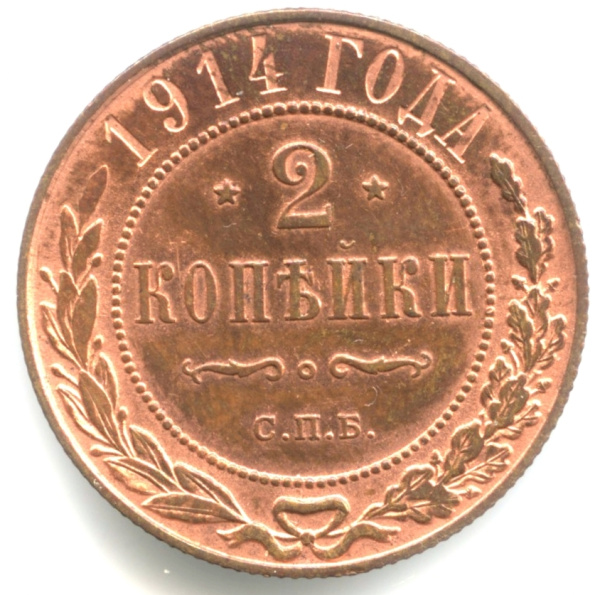 2 копейки 1914 CПБ. Красный штемпельный блеск. Отобрана из большого массива (Российская Империя)