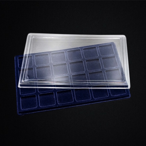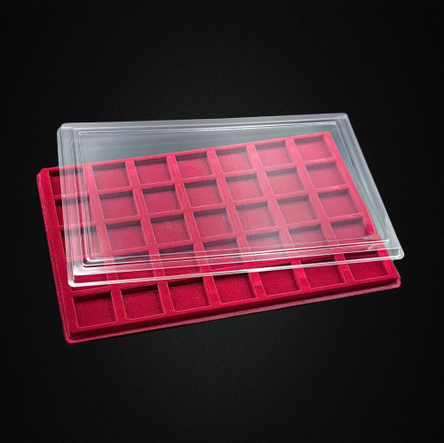 Планшет с крышкой для монет на 24 ячейки на 44×44мм. Размер 330×220×10 мм