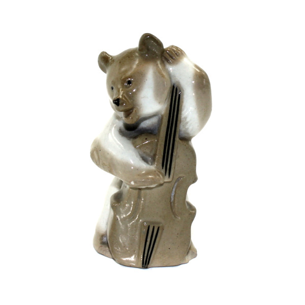 Статуэтка «Мишка» с контрабасом ЛФЗ. фарфор. есть мал. сколы (2 фото), 8×3см (СССР)