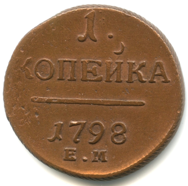 1 копейка — Вензель Павла I 1798 ЕМ (Российская Империя)