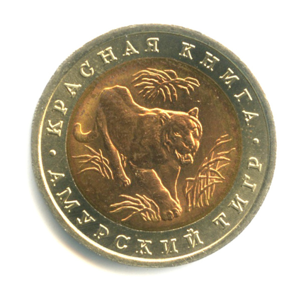 10 рублей — Амурский тигр 1992 ЛМД (Россия)