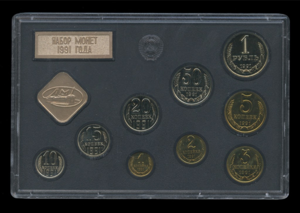 Годовой набор — Годовой набор: 9 монет + 2 жетона. Прозрачный футляр 1991 ЛМД (СССР)