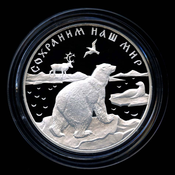 25 рублей — Полярный медведь 1997 ЛМД. В капсуле, с сертификатом. Банковская сохранность монеты (Россия)