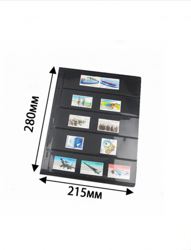 Комплект листов MINGT, двухсторонние с чёрной основой для банкнот, 5 ячейки, 10 штук, формат Vario. Новый в упаковке. Размер 280×215 мм. Коллекционный…