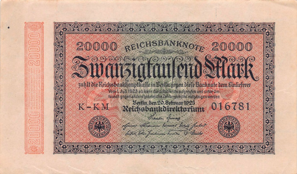 20000 марок (Pick: # 85) 1923 (Германия)