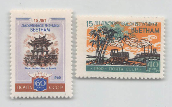 Лот почтовых марок «15 лет Демократической Республике Вьетнам». 2 шт. полная серия люкс 1960