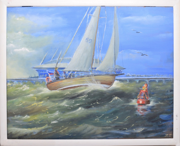 Картина «Яхта под всеми парусами». Автор: Галина Гусева. Масло, холст. Размер 43×54 см