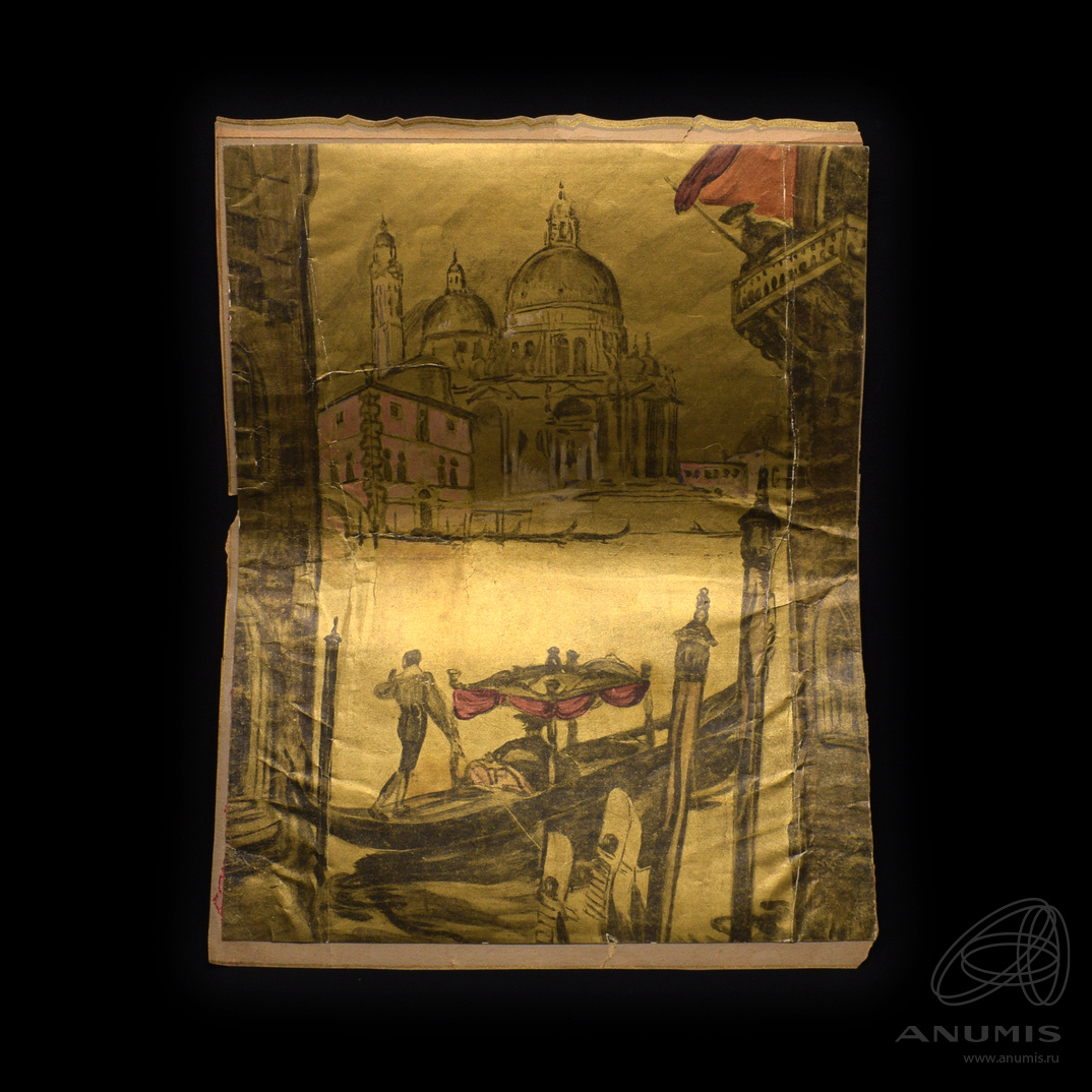 Хромолитография Венецианский гондольер на фоне собора. Размер 22×28,5 см