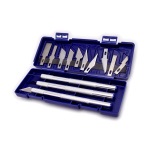 Нож-скальпель с набором сменных лезвий. Размер 14 см