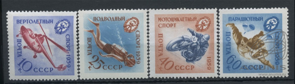 Серия негашёных марок «Спортивная серия ДОСААФ» 4 шт, полный комплект, редкая перфорация — гребёнка 12 ¼, **. стоимость по каталогу Загорского ред.2023 г. = 23 070 руб. для **