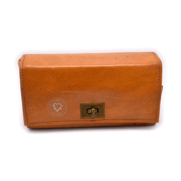 Подарочный набор с водкой «Русская водка» в кожаном футляре с двумя стопками. Размер 22×11 см. *бутылка пустая
