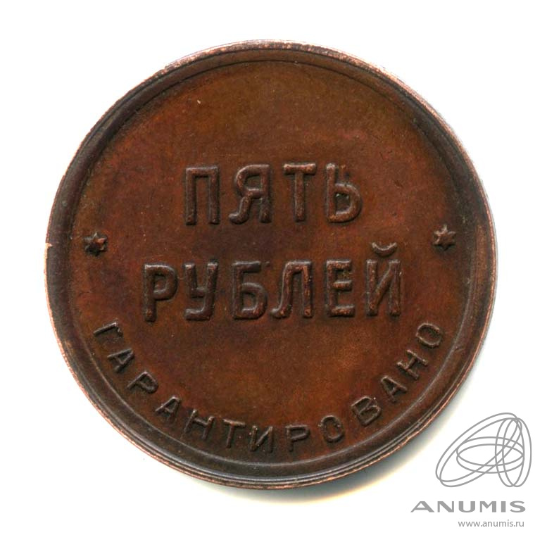 Монета регионального выпуска: 5 рублей 1922 года «2-я шорно-футлярная и чемоданная фабрика». Вторая Государственная Шорно-Футлярная и Чемоданная Фабрика (Петроград, 1922 г.). Российская Империя/РСФСР: Гражданская война (1917 — 1923). Медь, Гурт: Гладкий.